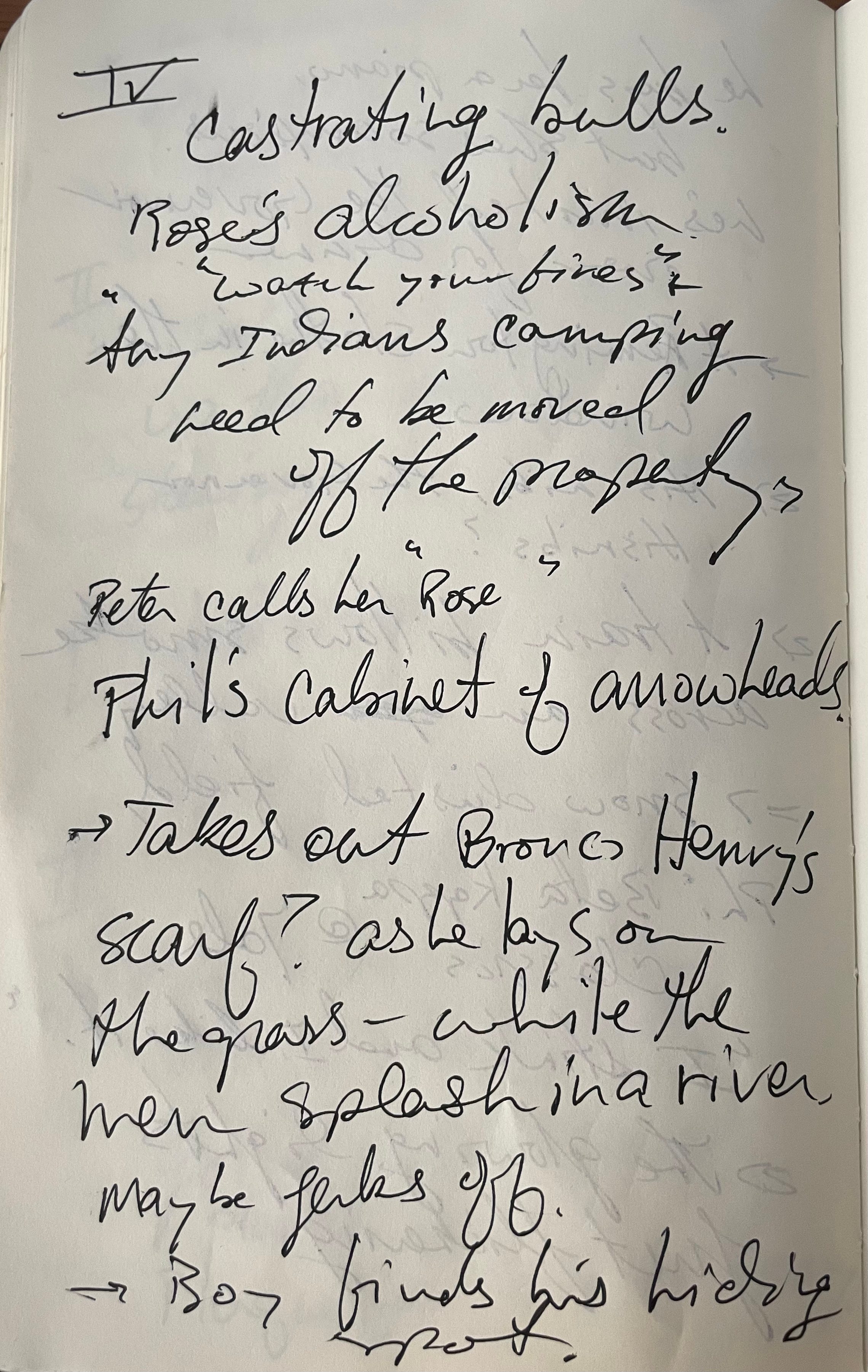 This is about seeing what others don’t see. Being seen. Being held by another’s vision. Seeing the dog in the mountain is what Bronco Henry taught Phil—their love? Their erotic past is figured not as physical, but visual. The ability to see—this is reinforced by the later discovery of “Physical Culture” magazine which belonged to Bronco Henry.